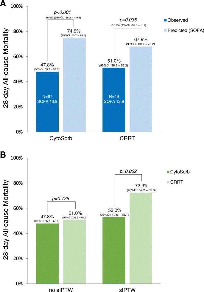 Hemoadsorption With Cytosorb Shows A Decreased Observed Versus Expected 28 Day All Cause Mortality In Icu Patients With Septic Shock A Propensity Score Weighted Retrospective Study Springerlink